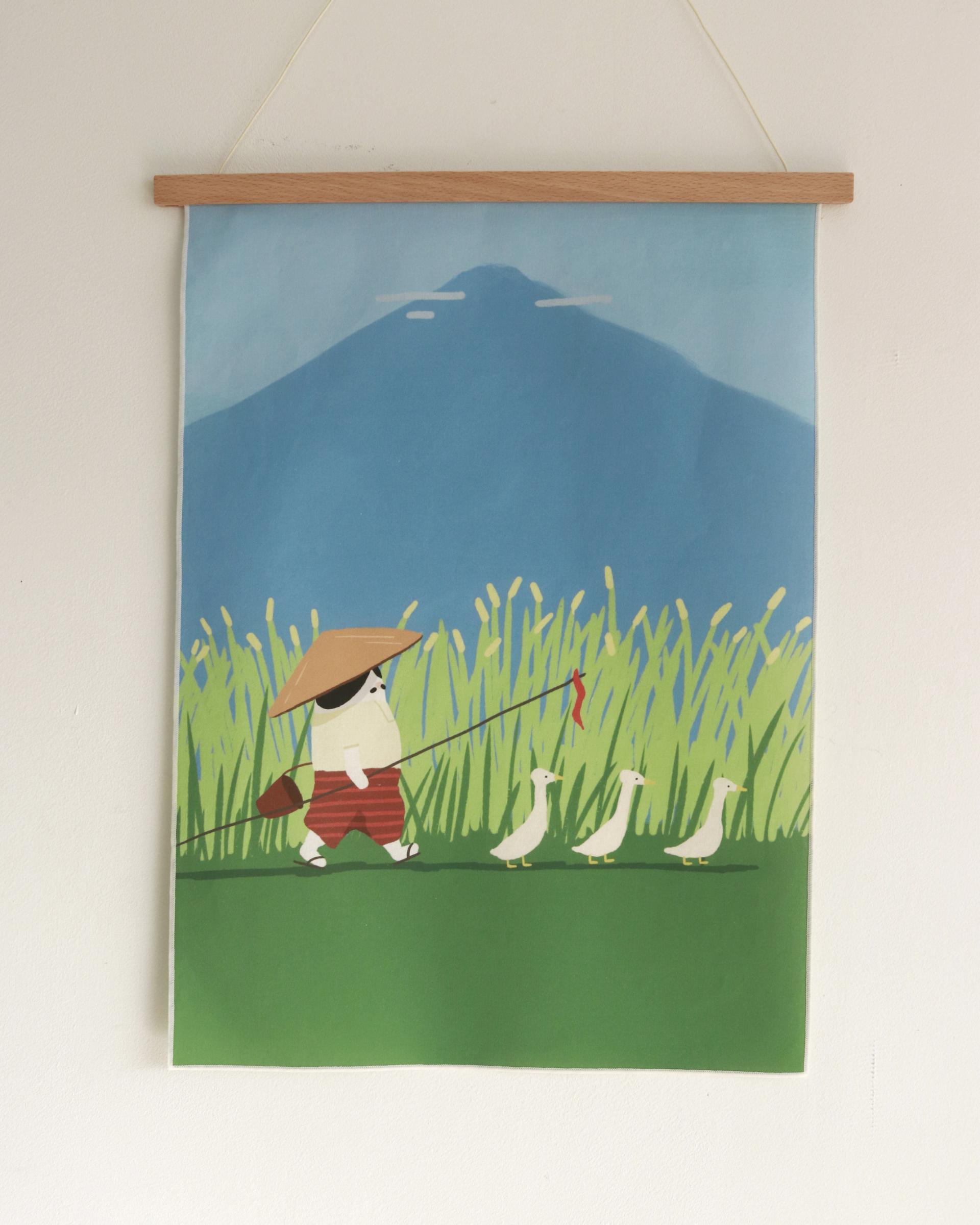 ‘토토는 도시의 소란과 번잡함에서 벗어나 고즈넉한 발리 우붓의 시골로 여행을 왔어요. 한적한 마을에 도착했을 때 이곳에서 느껴지는 평화로움에 감동을 받은 토토는, 오리와 함께 느릿느릿 산책하며 논바람을 즐겼답니다.’