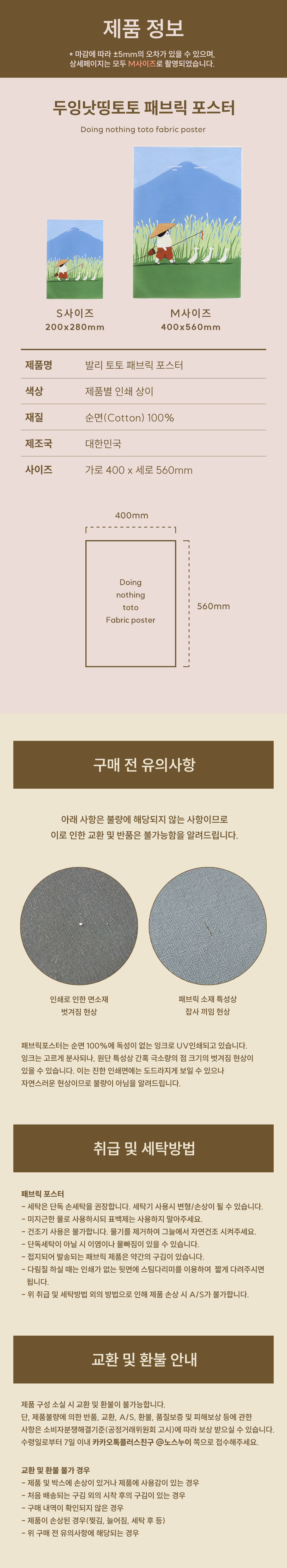 받으신 제품에 문제가 있을 시 수령 즉시 카카오톡채널 @노스누이 연락주셔야 합니다. 또, 단숨변심 일 경우 3일 내 반품희망 사실을 알려야하며 7일 내 반품수거가 완료가 되어야 합니다. 반품사항은 안내절차를 따라주세요. 제품불량에 의한 반품, 교환, A/S, 환불, 품질보증 및 피해보상 등에 관한 사항은 소비자분쟁해결기준(공정거래위원회 고시)에 따라 보상 받으실 수 있습니다.