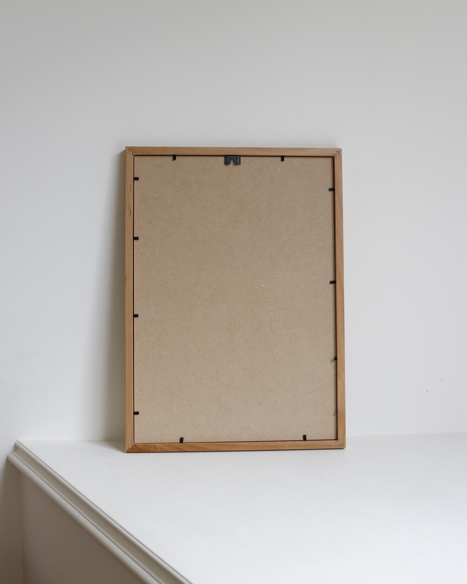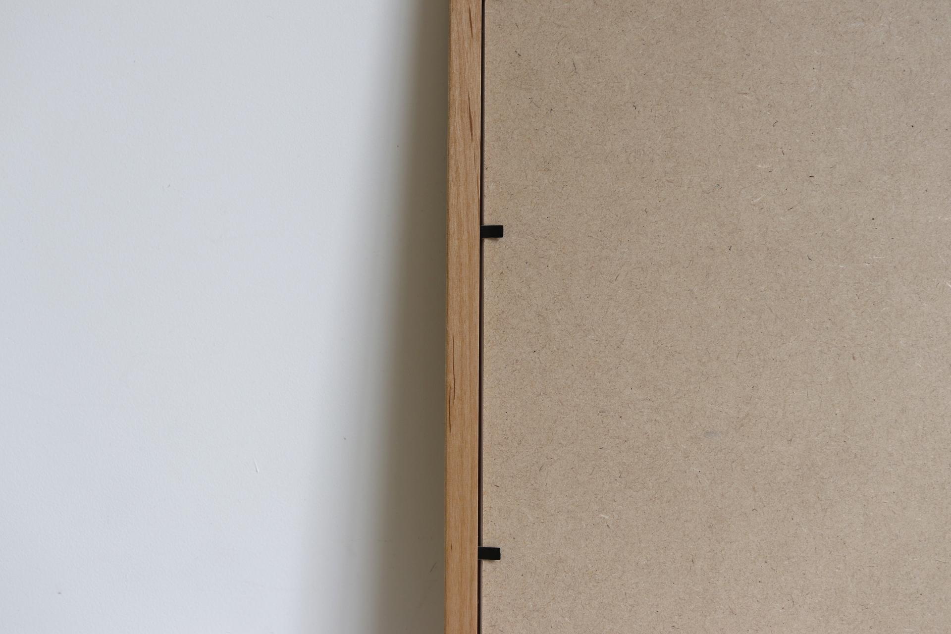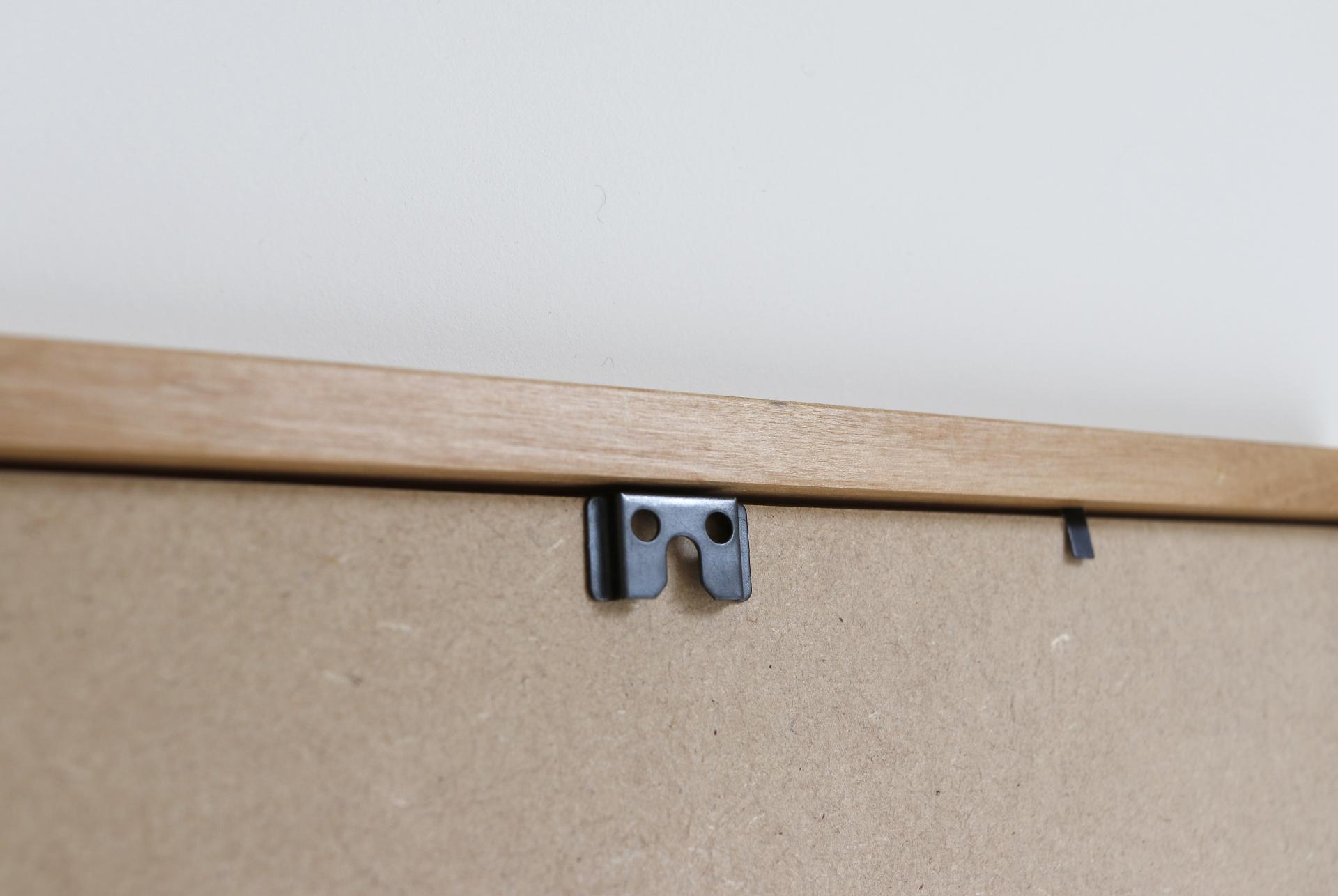 액자프레임 뒷면 모습입니다. 우드프레임에 벽걸이용 핀이 포함되어 있습니다.