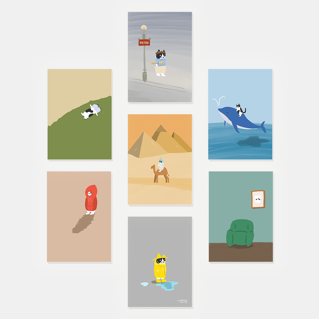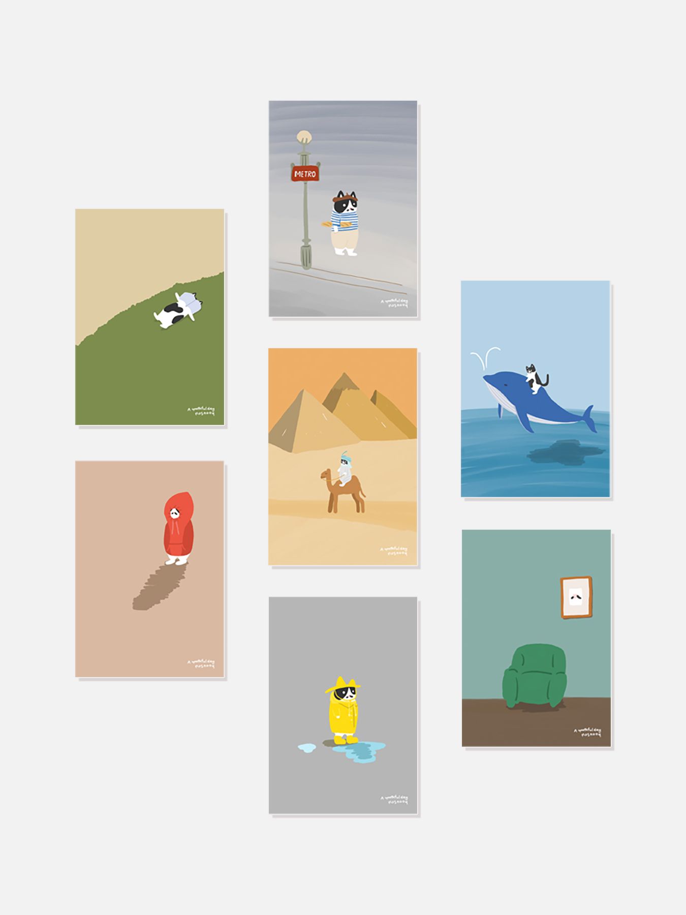 게으르지만 방구석에서 세계여행을 하고싶은 두잉낫띵토토의 엽서입니다. 상상력을 발휘해 세계 각지를 여행하는 모습을 떠올리게 합니다. 일상의 바쁨과 스트레스로부터 벗어나 여유롭고 편안한 시간을 갖고 사람들을 위해 제작되었습니다. 느긋하고 편안한 시간을 보내며 상상속 세계여행의 즐거움을 함께해주세요!