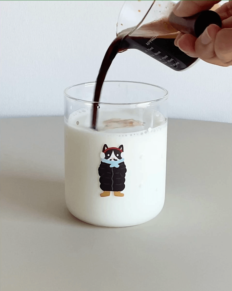 포근한 겨울, 패딩을 교복처럼 입는 귀여운 토토와 함께 하얀 눈이 내리는 겨울감성을 느낄 수 있어요. 취향에 맞게 뜨거운 음료로도, 차가운음 료로도 모두 즐길 수 있는 내열유리컵 입니다.