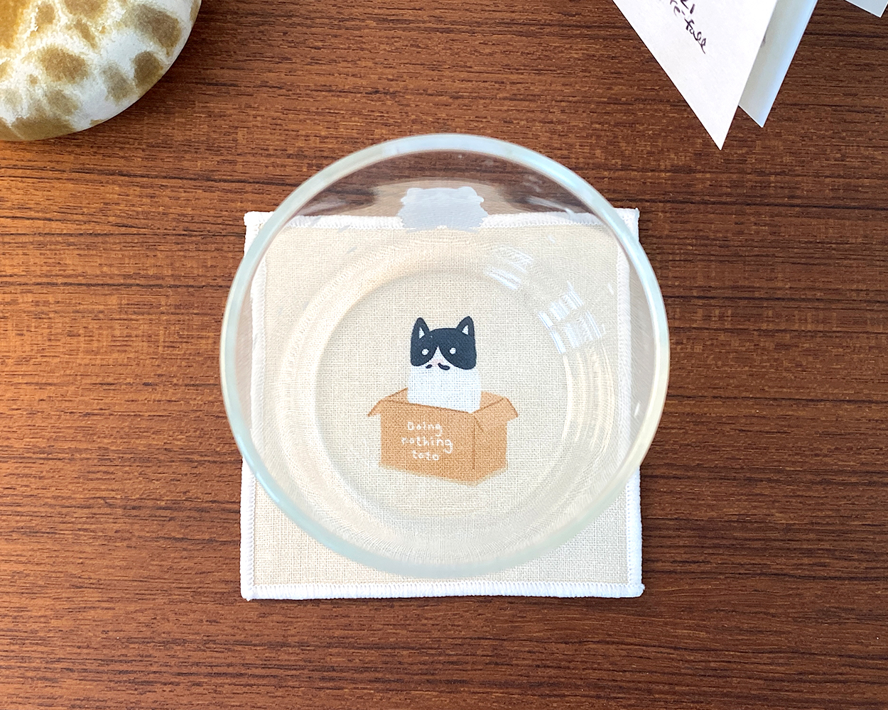 테이블위의 귀여운 일러스트로 일상에 작은 차이를 더해보세요. 깔끔함과 내구성을 모두 잡은 린넨 티코스터입니다.