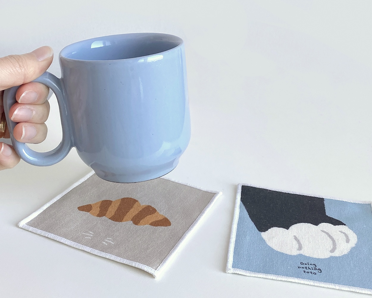 테이블위의 귀여운 일러스트로 일상에 작은 차이를 더해보세요. 깔끔함과 내구성을 모두 잡은 린넨 티코스터입니다.